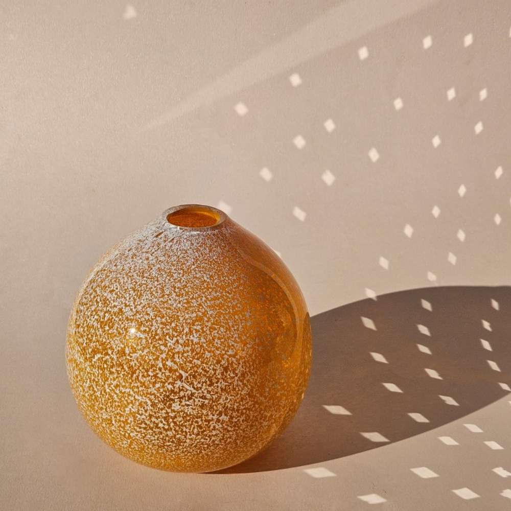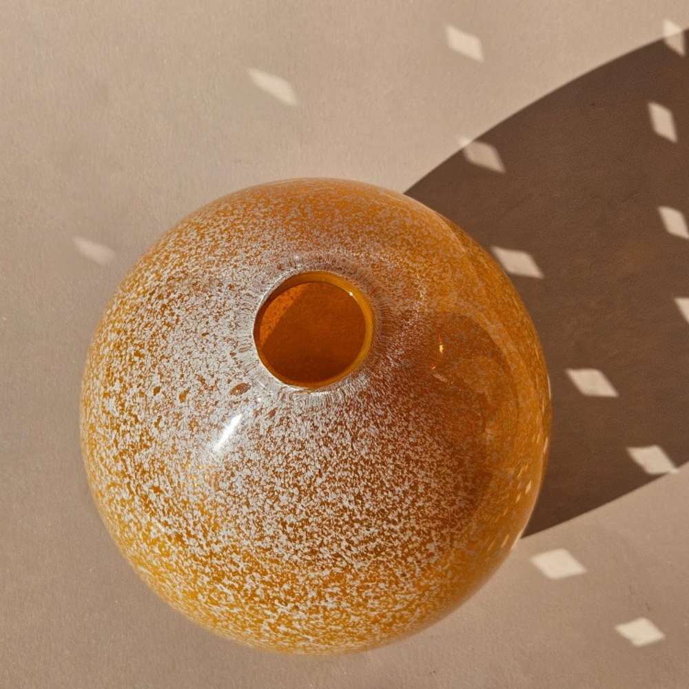 A radiant piece of Mid entury art glass, hand-blown with layered orange and foamed white casing. Sculptural and beautiful.