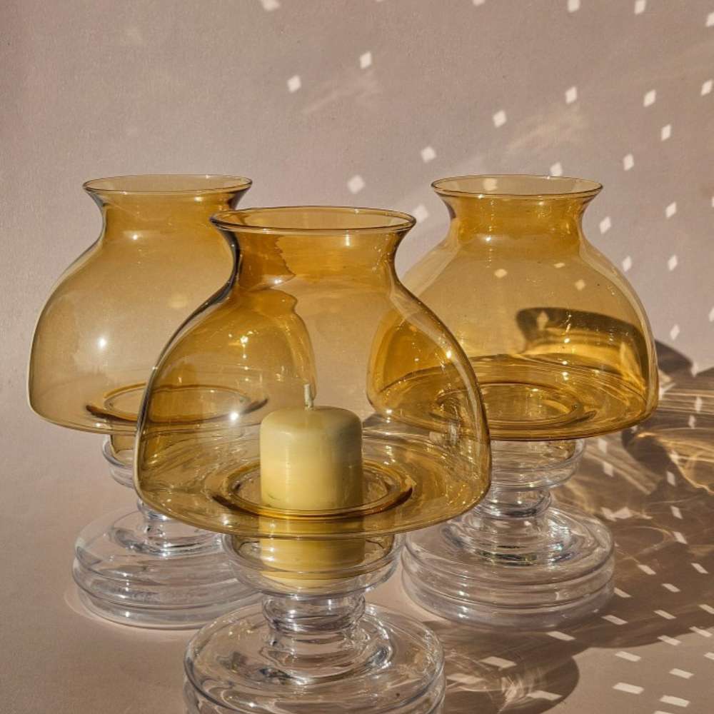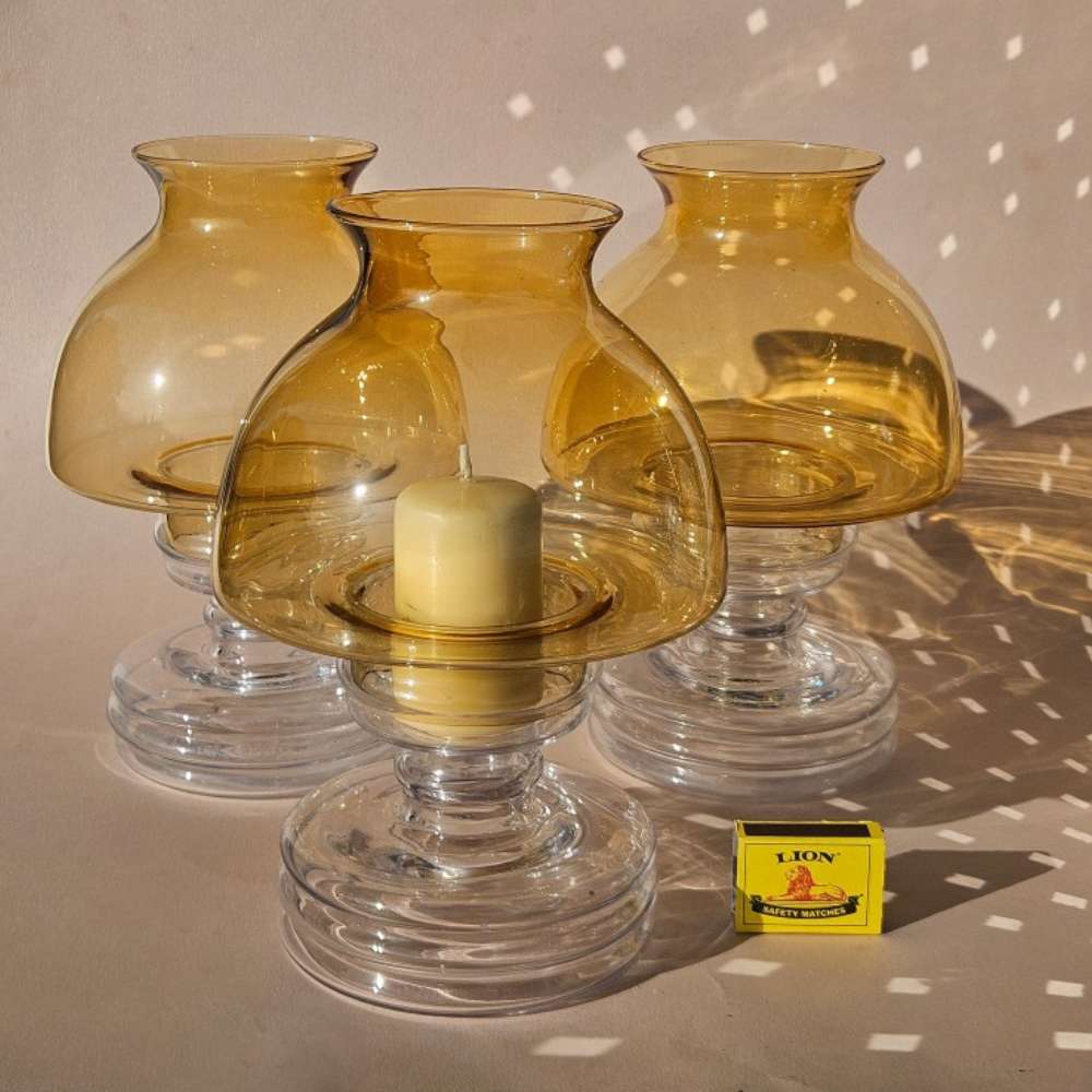 A trio of Apollo hurricane lamps by Nanny Still for Riihimäki, Finland (1970–1976), model 1200.