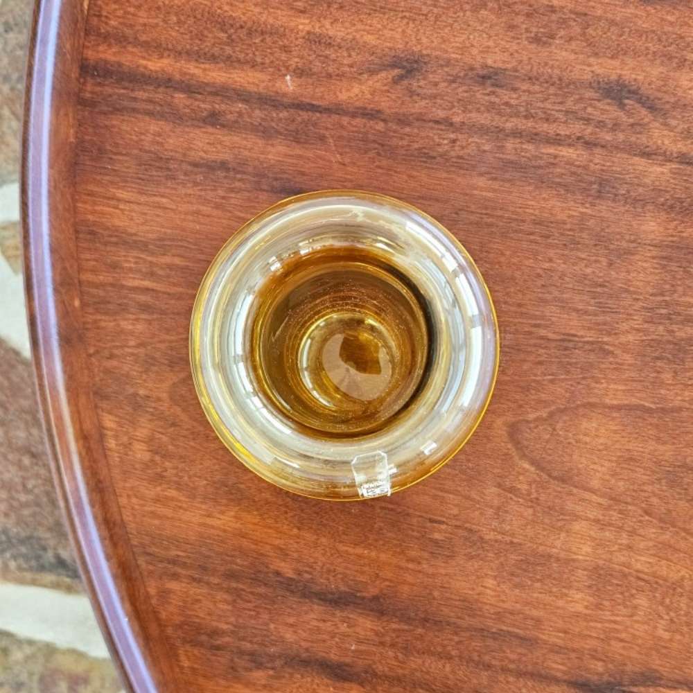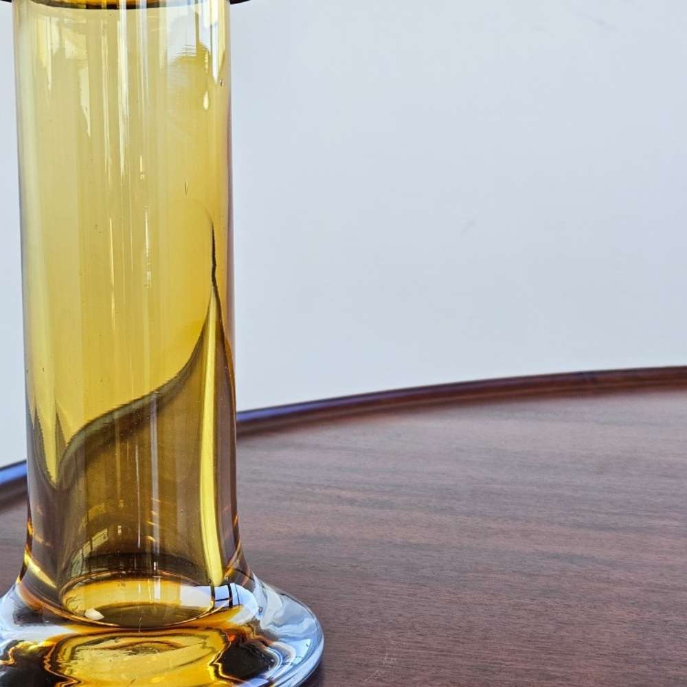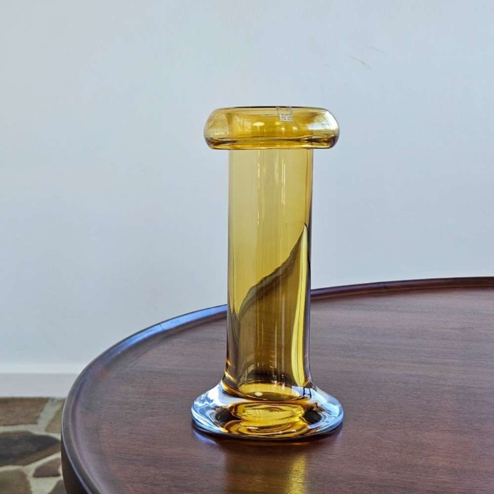 With its thick, rolled rim and clear base, this piece feels solid yet soft, almost as if it’s been turned on a potter’s wheel rather than blown from glass. The amber hue gives it a warm, understated glow, making it as much a sculpture as a vase.